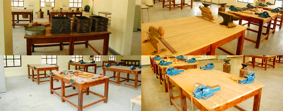 In carpentry shop students learn to do wood-work like to make wooden furniture, wooden articles, etc.