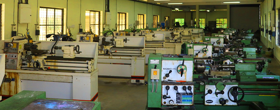 Smithy Shop has various furnaces for heating purpose, different Forging Tools such as Hammer. Shaping Tools like anvils other Holding Tools, Tongs, Chisels, fullers etc. here the students are emphasized on the correct dimensions and proper shape of the work piece.